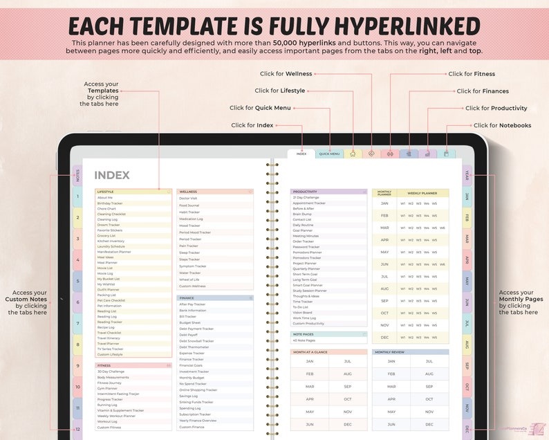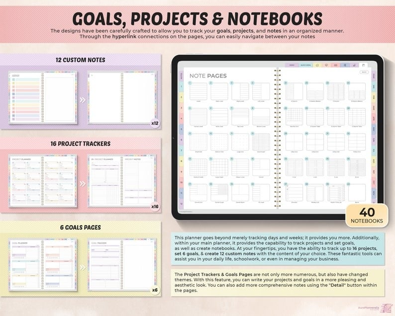 ⢠2024, 2025, 2026 & Undated All-in-One Digital Planners for Unlimited Future Use
